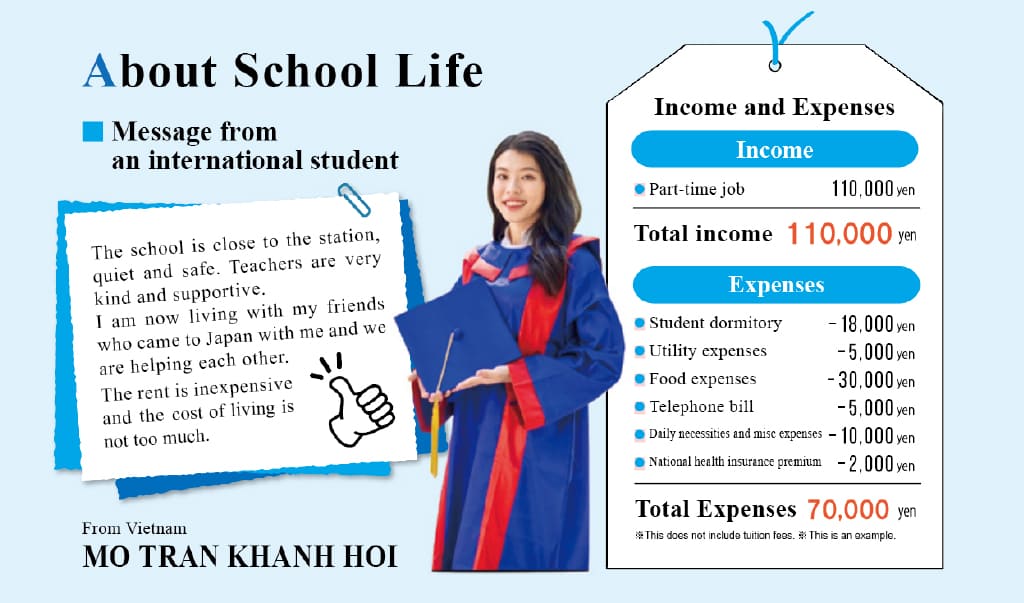 We will inform you about the school year schedule, school life, student dormitories, part-time jobs, and career support.